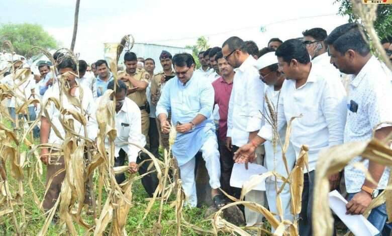 वडेटटीवार यांनी उंबरे व ब्राम्हणी येथील शेतकरी नारायण हापसे, विश्वनाथ तारडे यांच्या शेतात जाऊन नुकसानीची पहाणी केली़. पावसामुळे कपाशी, मका, बाजरी या पिकाच्या झालेल्या