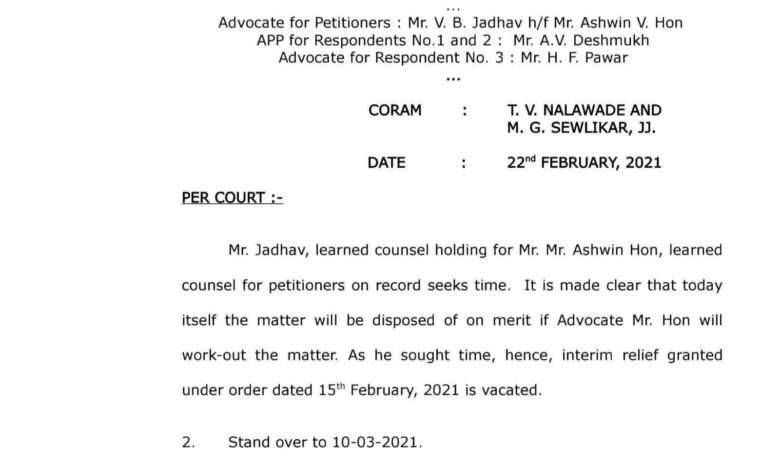अमळनेर येथील पंचायत समितीचे प्र गटविकास अधिकारी यांच्या विरोधात अमळनेर पोलीस ठाण्यात भारतीय दंड संहिता १८६ (कलम)३८५,५०१,भारतीय दंड संहिता १८६० प्रमाणे ५०४,५०६ अनुसूचीत जाती आणि अनुसूचीत जमाती (अत्याचार प्रतिबंधक अधिनियम) १९८२ प्रमाणे अट्रोसिटी चा गुन्हा दाखल करण्यात आला आहे. अमळनेर पोलीस ठाण्यात अमळनेर चे गटविकास अधिकारी संदिप वायाळ यांच्यावर अनुसूचित जाती जमाती कलमा नुसार अट्रोसिटी आणि पैसे मागितल्या प्रकरणी खंडणीचा गुन्हा दाखल करण्यात आला होता.या अनुषंगाने सदर प्र गटविकास अधिकारी त्यांच्या वरील गुन्हा खोटा असून तो रद्द करावा यासाठी उच्च न्यायालयात गेले होते. या संदर्भात दि 15 फेब्रुवारी 2021 रोजी उच्च न्यायालयाने त्यांच्या अटके बाबतीत तात्पुरत्या स्वरूपात कोणतीही कार्यवाही करू नये असा आदेश दिला होता. या आदेशात आज उच्च न्यायालयात जाऊन सदर याचिकेवर अर्ग्युमेंट करणे आवश्यक होते. परंतु सदर वकिलांच्या सहाय्यक यांनी सदर अर्ग्युमेंट करून पुन्हा वेळ मागितला.परंतु उच्च न्यायालयाने सदर याचिका फेटाळून लावली आणि 15 फेब्रुवारी चा आदेश हा रद्द करण्यात आला आहे. या आदेशानुसार आजच्या तारखे नुसार या नंतर सहा गटविकास अधिकारी ह्यांना अटक करण्याचे मार्ग मोकळे झाले आहेत.तसेच फिर्याद रद्द करण्याच्या याचिकेला अर्ग्यु करण्याची शेवटची तारीख ही 10 मार्च 2021 ही दिली आहे. यामुळे आरोपी सहा गटविकास अधिकारी संदीप वायाळ यांना आता अटक करण्यासाठी पोलिसांचा मार्ग मोकळा झाला आहे.