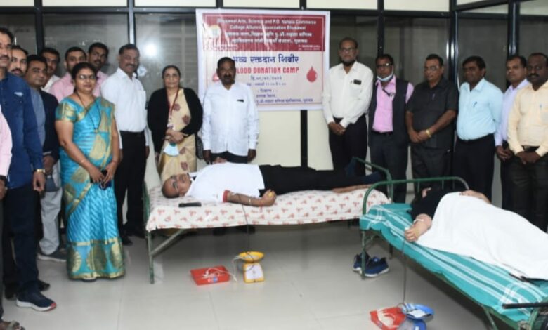 भुसावळ नाहाटा महाविद्यालय माजी विद्यार्थी संघटनेतर्फे भव्य रक्तदान शिबीर उत्साहात संपन्न शिबिरात एकूण 57 रक्तदात्यांनी केले रक्तदान