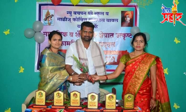 यांचा न्यू बचपन प्ले स्कूल व माळीच क्लासेस यावल यांच्यातर्फे सामाजिक व शैक्षणिक क्षेत्रात उत्कृष्ट कामगिरी केल्याबद्दल सन्मान चिन्ह देत केला सत्कार …