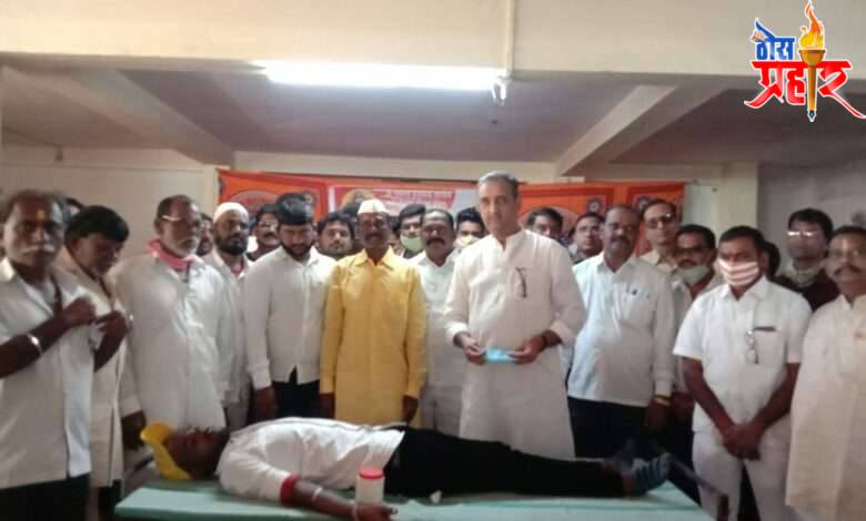 पंढरपूर : पंढरपूर शहरांमधील संत पेठ परिसरामध्ये समस्त हनुमान तालीम च्या वतीने कोरोनो सारख्या रोगाने थैमान घातला असून तिसरी लाट येण्याची शक्यता आहे म्हणून रक्ताचा पुरवठा कमी पडू नये या उद्देशाने समस्त हनुमान तालीम च्या वतीने भव्य रक्तदान शिबिर संपन्न झाले रक्तदान शिबिर वेळी प्रमुख उपस्थिती म्हणून जिल्ह्याचे आमदार प्रशांत मालक परिचारक व समस्त हनुमान तालीम संस्थापक अध्यक्ष पिराजी अण्णा धोत्रे यांच्या मार्गदर्शनाखाली रक्तदान शिबिराचे आयोजन संपन्न या रक्तदान शिबिराला उपस्थित असलेले नगरसेवक राजू सर्वगोड नगरसेवक वामन तात्या बंदपट्टे भाजपा सरचिटणीस बादल ठाकुर नगरसेवक संजय निंबाळकर नगरसेवक इब्राहिम बोहरी बशीर भाई तांबोळी डॉ धीरज जाधव नगरसेवक बसवेश्वर देवमारे असलम तांबोळी समाजसेवक आदम बागवान शफिक मुलाणी श्रीकांत शिंदे मुजम्मिल सय्यद डी राज सर्वगोड माजी नगरसेवक कृष्ण वाघमारे नाना वाघमारे सुनील बागडे शरद पवार सिद्धेश्वर बागडे संजय अडगळे दत्ता वतारे भीमराव वाघमारे आदीसह कार्यकर्ते उपस्थित होते