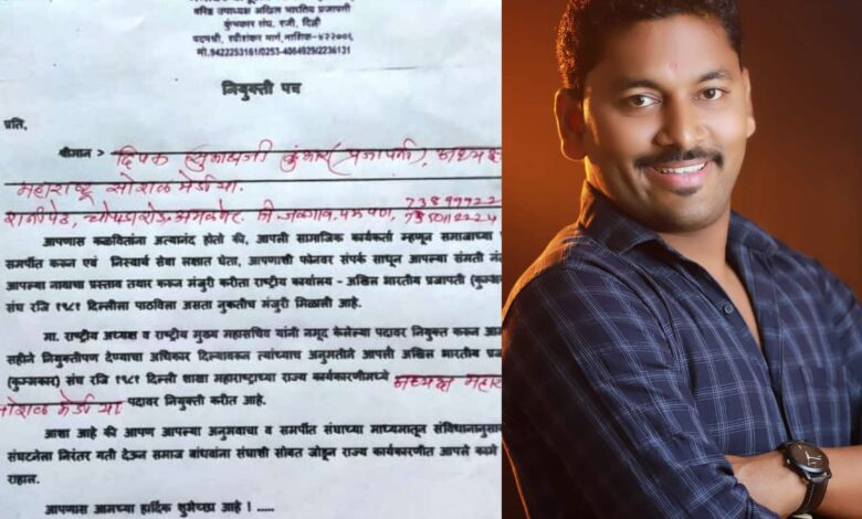 Amalner: अखिल भारतीय प्रजापती कुंभार समाज महाराष्ट्र सोशल मीडिया अध्यक्ष पदी दीपक कुंभार यांची नियुक्ती..