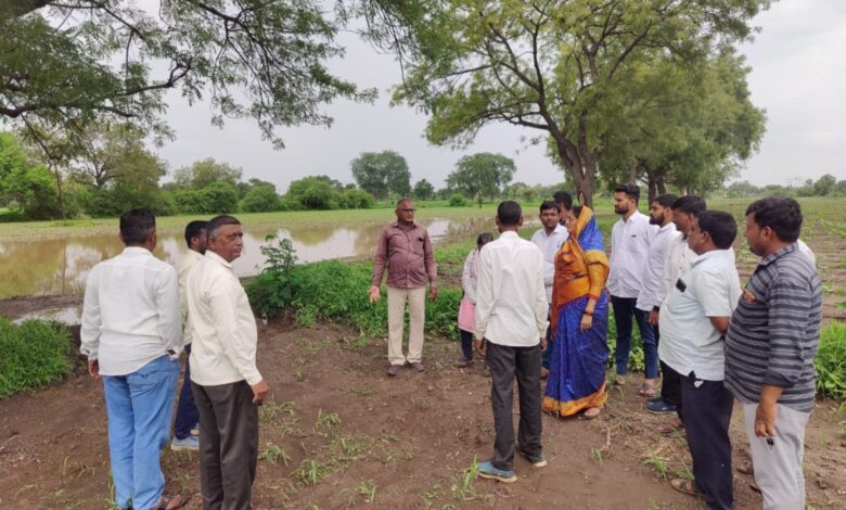 अतिवृष्टीमुळे याठिकाणी कित्येक एकर शेती वाहून गेली आहे. २७ रोजी सायंकाळी ही अतिवृष्टी झाली.यावेळी गावदरवाज्याच्या बाहेर नाल्यावर असलेल्या पुलावरून पाणी वाहत असल्याने गावात प्रवेश करणे अवघड झाले होते. पेरणी होऊन पिके उगवली होती मात्र अतिवृष्टीने पिके तर काही शेतातली माती देखील वाहून गेल्याने शेतकऱ्यांचे मोठे नुकसान झाले आहे.पाहणी दरम्यान स्मिता वाघ यांनी शेतकऱ्यांना धीर देत शासकीय मदत मिळवून देण्याची ग्वाही दिली.यावेळी