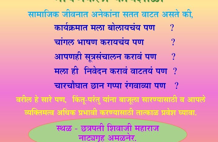 Amalner:गौरीसुत प्रतिष्टान संचलित मोरया नाट्य संस्था आयोजित भाषणकला कार्यशाळेचे आयोजन..