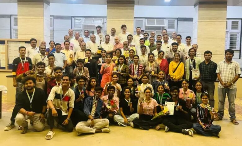 Amalner: युवारंग युवक महोत्सवात उपविजेत्या संघाचा खा शि तर्फे सत्कार…अमळनेर क ब चौधरी विद्यापीठातर्फे झालेल्या युवारंग युवक महोत्सवात ५ सुवर्णपदके ५ रजतपदके, ६ कांस्यपदके प्राप्त झाले. युवारंग स्पर्धेत सर्वसाधारण उपविजेता ठरलेल्या प्रताप महाविद्यालयाच्या कलावंत संघाचा खान्देश शिक्षण मंडळ व प्रताप महाविद्यालयाच्या वतीने सन्मान करण्यात आला. एकूण 26 कला प्रकारात 23 कला प्रकारात महाविद्यालयाने सहभाग घेत 16 पदके प्राप्त केली.या वेळी संस्थेचे अध्यक्ष जितेंद्र झाबक, उपाध्यक्ष जितेंद्र देशमुख, विश्वस्त वसुंधरा लांडगे, कार्याध्यक्ष डॉ. अनिल शिंदे,कार्योपाध्यक्ष प्रदीप अग्रवाल, संचालक योगेश मुंदडे, सीए. नीरज अग्रवाल, बजरंगजी अग्रवाल, चिटणीस तथा प्राचार्य डॉ. ए. बी. जैन, सहचिटणीस डॉ. धीरज वैष्णव, उपप्राचार्य प्रा. डॉ.जी.एच. निकुंभ, प्रा. डॉ. कल्पना पाटील, प्रा. डॉ. जयंत पटवर्धन, प्रा. पराग पाटील, प्रा. डॉ. विजय मांटे, माजी प्राचार्य डॉ. पी. आर. शिरोडे, डॉ. अविनाश जोशी, आयक्युएसी समन्वयक डॉ.मुकेश भोळे,वसतिगृह प्रमुख डॉ. अमित पाटील, प्रा. आर. एम. पारधी, आदी मान्यवर उपस्थित होते. विजेत्या स्पर्धक संघाचे ढोलताशांच्या गजरात फटाके वाजवून स्वागत करण्यात आले.युवारंग समन्वयक प्रा. नितीन पाटील, सह-समन्वयक डॉ. योगेश तोरवणे, संघव्यवस्थापक प्रा. डॉ. तुषार रजाळे, महिला संघव्यवस्थापक: डॉ. नलिनी पाटील यांनी विशेष मेहनत घेतली. तसेच उपप्राचार्य प्रा. पराग पाटील, प्रा. डॉ. संदीप नेरकर, ग्रंथपाल डॉ. डी. आर. पाटील, प्रा. डॉ. धनंजय चौधरी, प्रा हेमंत पवार, प्रा. योगेश तोडा, प्रा. अवित पाटील, प्रा. योगेश पाटील, प्रा. किरण भागवत, प्रा. किरण सूर्यवंशी, प्रा. संतोष दिपके, प्रा. एस डी बागूल, प्रा महेंद्र महाजन, प्रा. आकाश पाटील कार्यालयीन अधीक्षक राकेश निळे, कुलसचिव आबासाहेब मैराळे, भटू चौधरी इ. चे सहकार्य लाभले.