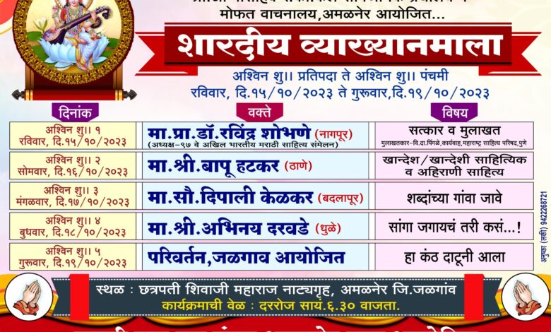 Amalner: शहरात १५ ऑक्टोबर पासून शारदीय व्याख्यानमाला…