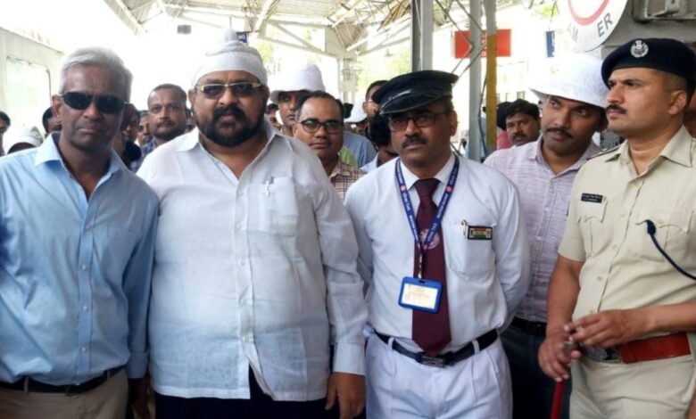 अमळनेर रेल्वे स्थानक भेटी प्रसंगी डीआरएम वर्मा यांच्यासमवेत ७० अधिकारी कर्मचाऱ्यांचा ताफा होता. अचानक विशेष वाहनाने त्यांनी अमळनेर भेट दिली.