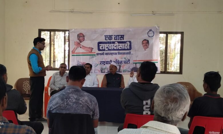 येथे राष्ट्रवादी काँग्रेसतर्फे “एक तास राष्ट्रवादीसाठी” या कार्यक्रमाचे आयोजन करण्यात आले होते.यावेळी राष्ट्रवादी काँग्रेसचे जिल्हा उपाध्यक्ष प्रल्हाद बोंडे,राष्ट्रवादी ओबीसी सेलचे तालुकाध्यक्ष सुनील कोंडे,माजी सरपंच डिगंबर चौधरी,श्रीराम मंदिर ट्रस्टचे अध्यक्ष अनिल ब-हाटे,गुणवंत भंगाळे,रवींद्र भोगे,दत्तात्रय पवार,गिरीश नेहेते,रोशन बोंडे,किरण कोंडे,गौरव कोंडे,राहुल बारी,प्रदीप जंगम, यांसह अन्य ग्रामस्थ उपस्थित होते.
