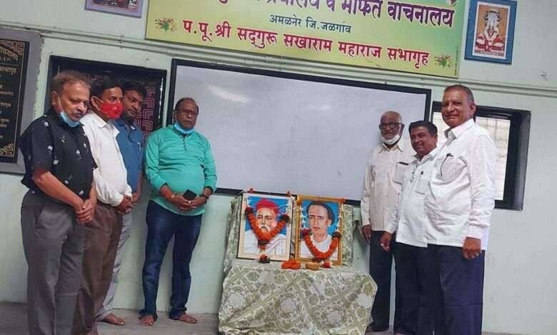 अमळनेर : पूज्य साने गुरुजी ग्रंथालय व मोफत वाचनालय अमळनेर येथे अण्णाभाऊ साठे व लोकमान्य टिळक पुण्यतिथी साजरी करण्यात आली.
