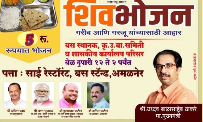 अश्या दोन ठिकाणी शिव थाळी भोजनालयाचा उद्या दि २२ एप्रिल २०२० रोजी पासून शुभारंभ होत आहे. अमळनेर तहसीलदार मा. मिलिंंदकुमार वाघ यांनी सांगितले की, गरीब गरजूंसाठी हा शिव थाळी भोजन आहार असून त्यांनी याचा अवश्य लाभ घ्यावा अशी माहिती देण्यात आली आहे.