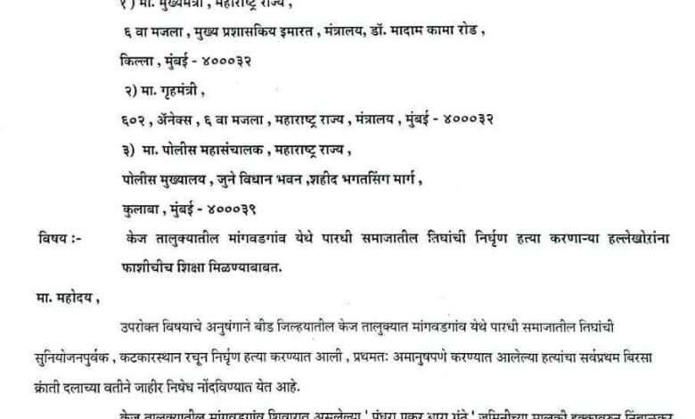 पारधी समाजातील तिघांची निर्घुण हत्या करणाऱ्या हल्लेखोरांना फाशीचीच शिक्षा द्या
