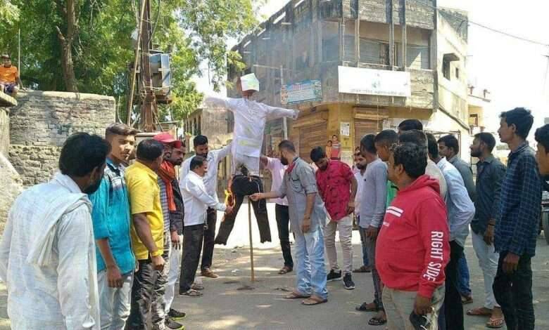दोडांईचा येथे मा.मंत्री नारायण राणेंचा पुतळा दहन.