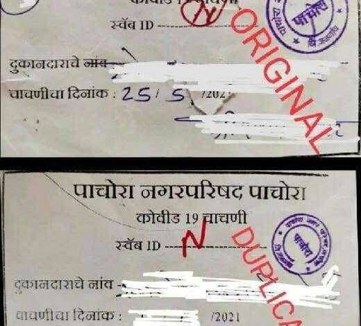 पाचोऱ्यात होत आहेत खोटे अँटीजन टेस्ट रिपोर्ट दाखवून खरेदी – विक्री व्यवहार