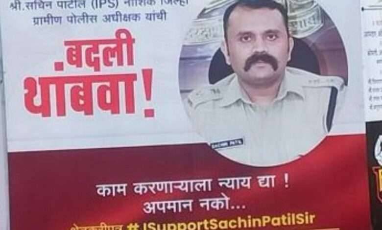 नाशिक जिल्हा पोलिस अधीक्षक सचिन पाटील यांची बदली रद्द करा, शेतकऱ्यांनी लावले गावागावात फलक
