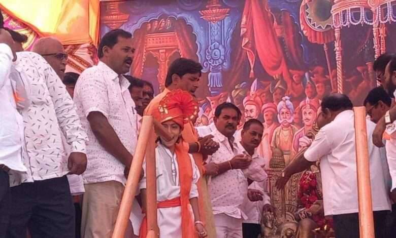 या वेळी छत्रपती शिवाजी महाराज यांच्या मुर्तीचे पुजन माजी आमदार ज्ञानेश्वर पाटील यांच्या हस्ते करण्यात आले.