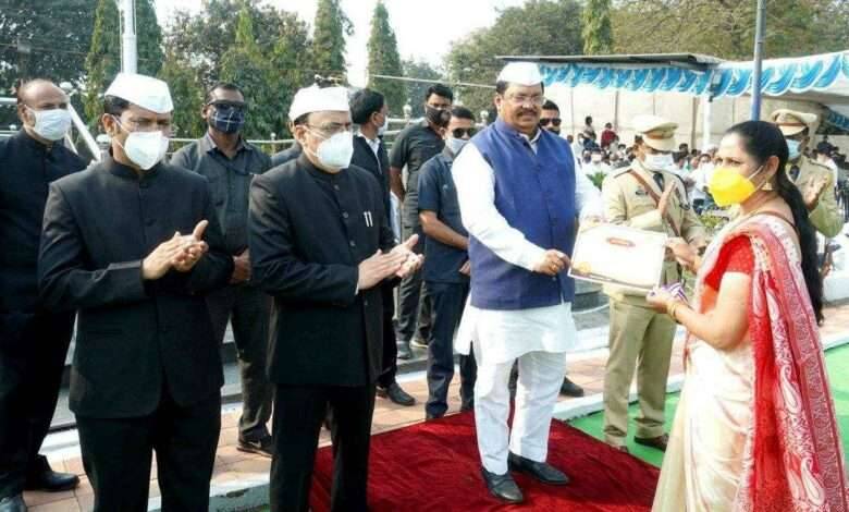 प्रजासत्ताक दिनानिमित्त येथील पोलीस मैदानावर मुख्य शासकीय ध्वजारोहणाचा कार्यक्रम राज्याचे इतर मागास बहुजन कल्याण, मदत व पुनर्वसन, आपत्ती व्यवस्थापन, खार जमीन विकास विभागाचे मंत्री तथा चंद्रपूर जिल्ह्याचे पालकमंत्री विजय वडेट्टीवार यांच्या हस्ते करण्यात आला. यावेळी ते बोलत होते. कार्यक्रमाला जिल्हा परिषदेच्या अध्यक्षा संध्या गुरनुले, आमदार किशोर जोरगेवार, महापौर राखी कंचर्लावार, जिल्हाधिकारी अजय गुल्हाने, जिल्हा पोलीस अधीक्षक अरविंद साळवे, जिल्हा परिषदेचे मुख्य कार्यकारी अधिकारी राहुल कर्डिले, महानगरपालीका आयुक्त राजेश मोहिते, अपर जिल्हाधिकारी विद्युत वरखेडकर, अपर पोलीस अधीक्षक प्रशांत खैरे, एकात्मिक आदिवासी विकास प्रकल्पाचे प्रकल्प अधिकारी रोहन घुगे, शासकीय वैद्यकीय रुग्णालय व महाविद्यालयाचे अधिष्ठाता डॉ. अरूण हुमणे यांच्यासह प्रशासनातील सर्व विभाग प्रमुख, जिल्ह्यातील स्वातंत्र्य संग्राम सैनिक, ज्येष्ठ नागरिक, कोविड योद्धा पुरस्कार प्राप्त झालेले मान्यवर, राजकीय, सामाजिक, क्षेत्रातील मान्यवर व सामान्य नागरिक उपस्थित होते.