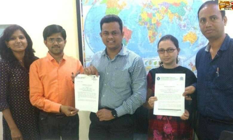 छायाचित्र- स्वेरीज् कॉलेज ऑफ फार्मसी आणि मिस्टेअर हेल्थ अँड हायजीन प्रा.लि. (शिरोळी, जि. कोल्हापूर) यांच्यात सामंजस्य करार स्थापन झाल्यानंतर स्वाक्षरी झालेल्या कराराची प्रत कंपनीचे संचालक तेजस ठाकूर यांच्याकडून स्विकारताना प्रा. व्ही. व्ही. मोरे सोबत डावीकडून प्रा. पी.के. खुळे, कंपनीच्या सरव्यवस्थापक प्राजक्ता पाटील व प्रकल्प व्यवस्थापक अजित पाटील.
