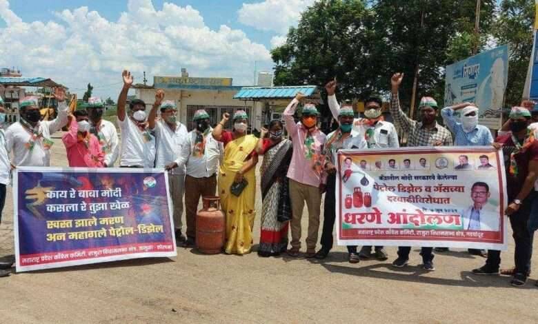 कोपरना : काँग्रेसचे प्रदेशाध्यक्ष नाना पटोले यांचे निर्देशानुसार, केंद्रातील मोदी सरकारने पेट्रोल आणि डिझेल दरांमध्ये केलेल्या अवास्तव दरवाढीचा निषेध करण्याकरिता संपूर्ण राज्यात सोमवारी काँग्रेसच्या वतीने आमदार सुभाष धोटे यांच्या नेतृत्वाखाली कोरपना येथे बसस्थानक चौकात तर गडचांदूर येथे राजीव गांधी चौकात निषेध आंदोलन करण्यात आले.