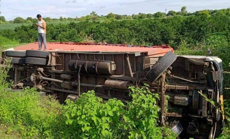 वैजापूर तालुक्यातील गोळवाडी फाट्याजवळ हॉटेल तोरणगढ समोर रविवार दि १८ जूलै रोजी सकाळी ८ वाजेच्या सुमारास मुंबई भिवंडी कडून औरंगाबाद मार्गे कलकत्त्याला जाणारा ट्रक मालवाहतूक कंटेनर चालकाने मोटारसायकल स्वराला वाचविण्याच्या प्रयत्नात पलटी झाला.