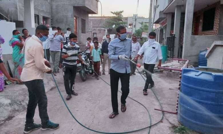 कोरोना विषाणू प्रादुर्भावाच्या पार्श्वभूमीवर आमदार मंगेश चव्हाण यांनी केली औषध फवारणी