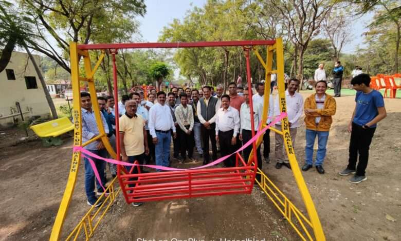 Amalner: रोटरी क्लब तर्फे श्री मंगळदेव ग्रह मंदिरातील रोटरी गार्डन मध्ये तीन खेळण्यांचे लोकार्पण
