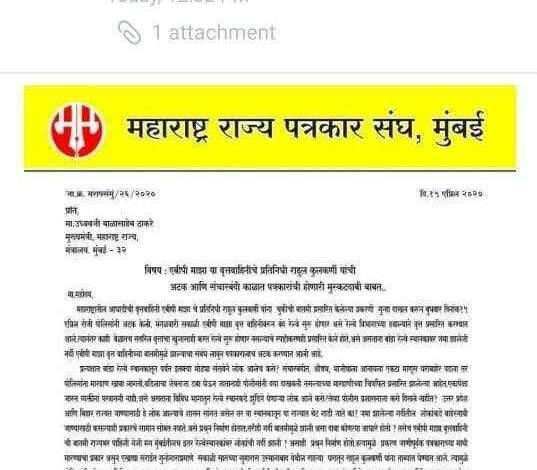तसेच कुलकर्णी यांचा बांद्रा येथे गर्दी जमवण्याचा संबंध नाही त्यांचेवरील गुन्हे शासनाने मागे घ्यावेत अशी पुनश्च मागणी प्रदेशाध्यक्ष वसंत मुंडे यांनी जाहीरपणे केली आहे. अशा कठीण काळात महा.राज्य पञकार संघ न्यायाची सत्यमेव भूमिका घेत असल्यामुळे पञकारितेतील वर्तुळात समाधान व्यक्त केले जात आहे.