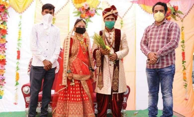 अमळनेर प्रतिनिधी- तालुक्यातील आदर्शगाव देवगाव देवळी माळी समाजाचा घरगुती वातावरणात तहसिलदार मिलिंद वाघ यांचा उपस्थितीत आदर्श विवाह सोहळा संपन्न झाला,देवगाव देवळी येथील रहिवाशी भगवान दत्तू महाजन यांची कन्या चि.सौ.का.निकिता व सुरत येथील रहिवाशी गुलाब शेनपडू महाजन यांचे सुपुत्र चि.भाविक यांचा विवाह दि.१४मे रोजी ठरला होता मात्र कोरोना विषाणूच्या पार्श्वभूमीवर हे लग्न पुढे ढकलण्यात आले. दोन्हीकडील नातेवाईकांनी मध्यस्थी करत साध्या पद्धतीने लग्न करण्याचा विचार बोलून दाखवला. त्यामुळे हा विवाह दि. २८ मे रोजी पार पाडण्याचे ठरवण्यात आले.त्यानुसार आज दि.२८ रोजी घरगुती वातावरणात सामाजिक अंतर व सुरक्षिततेचे नियम पाळून हा आदर्श विवाह सोहळा संपन्न झाला.यावेळी तहसिलदार मिलिंद वाघ यांनी बोलतांना आवाहन केले की सर्व समाजातील नागरिकांनी ह्या विवाह सोहळ्याचा आदर्श घ्यावा जेणेकरून मुलीचे वडील अथवा मुलाचे वडील यांचा अनावश्यक खर्च वाचेल व त्यातून काही रक्कम समाजपयोगी कामांसाठी उपयोग होईल व खर्च वाचेल कन्येच्या विवाहपोटी अनेक जण कर्जबाजारी होतात व आत्महत्या करतात ही वेळ येणार नाही व दाम्पत्य देखील सुखात राहील असे आवाहन केले.