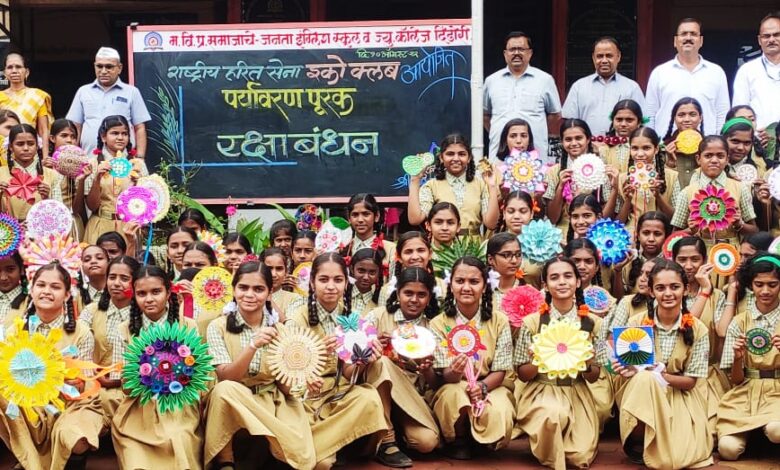 राष्ट्रीय हरितसेना अंतर्गत इको क्लब चे वतीने जनता इंग्लिश स्कूल व उच्च माध्यमिक विद्यालयात पर्यावरण पूरक रक्षाबंधन साजरा करण्यात आला.