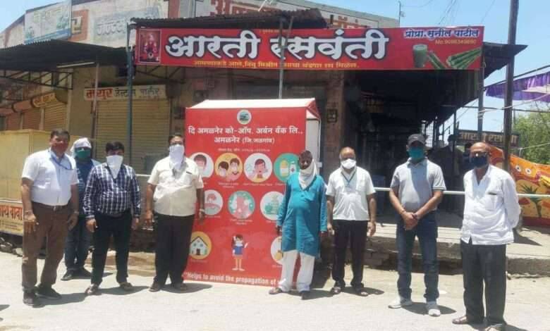 अमळनेर शहरातील कॉन्टिनेटल झोन(रेड झोन) (झामी चौक, आम्लेशवर नगर इ. )म्हणून घोषित करण्यात आला आहे त्या भागात जाण्यासाठी प्रशासनाने एक च प्रवेश ठिकाण पन्नालाल चौक येथे करण्यात आले आहे. तरी सदर ठिकाणी दि अमळनेर अर्बन बँक चा सौजन्याने तज्ञ डॉक्टर व आरोग्य विभागाचा मार्गदर्शनाने निर्जंतुकिकरण प्रवेश द्वार ची निर्मिती करण्यात आली आहे सदर प्रवेशद्वार लोकासाठी आज माजी आमदार साहेबरावदादा पाटील, पोलीस निरीक्षक अंबादास मोरे साहेब, बॅँकेचे चेअरमन पंकज मुंदडे, मॅनेजर अमृताआबा पाटील, संचालक लालू शेठ, शांताराम ठाकूर, प्रवीण जैन,प्रदीप अग्रवाल,अभिषेक पाटील,भरत ललवाणी,बाळासाहेब संदानशीव, पंकज चौधरी, कर्मचारी प्रवीण सातपुते,अवी जाधव, किरण बागुल ,विक्रांत पाटील व सामाजिक कार्यकर्ते उपस्थित होते.बॅँकेचा ह्या कार्यानिमित्त मान्यवरांनी कौतुक करून आभार मानले.