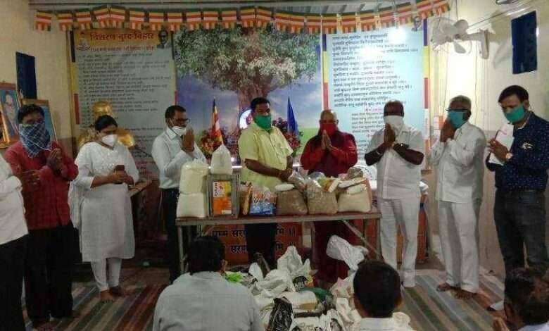 त्रिशरण संस्थेतर्फ भन्ते बोधीपाल यांना किराणा वस्तूचे वाटप—