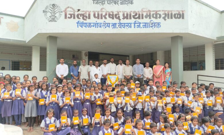 पिंपळगाव लेप येथील जिल्हा परीषद शाळेतील विद्यार्थ्यांना दान पारमिता फाउंडेशनच्या वतीने एक वही एक पेन वाटप,