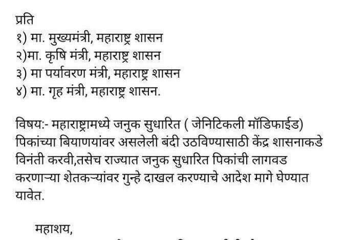 जनुकीय सुधारित बियाण्याला परवानगी द्यावी या मागणीसाठी शरद जोशी प्रणित शेतकरी संघटनेने २८ मे रोजी केंद्र व राज्य सरकारमधील संबंधित मंत्र्यांना ई-मेल पाठविण्याचे आंदोलन केले असल्याची माहीती शेतकरी संघटनेचे युवा जिल्हाध्यक्ष रुपेश शंके यांनी माध्यमांना दिली आहे.