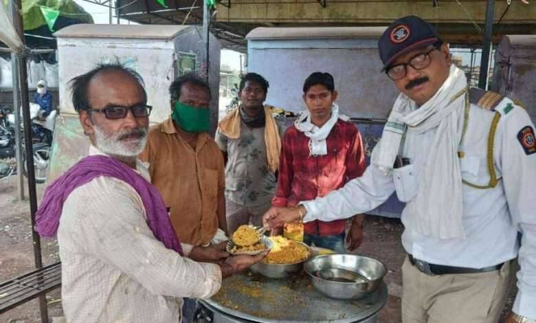 कोरपना व्यापारी पोलीस विभाग ने मजुरांना केली भोजनाची व्यवस्था