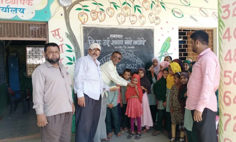 मोठा वाघोदा येथील जिल्हा परिषद उच्च प्राथमिक उर्दु शाळेत प्रवेशोत्सव साजरा