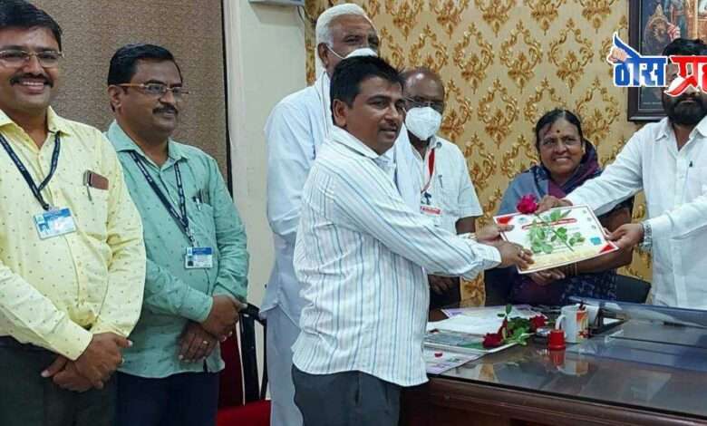 उपक्रमशील शिक्षक ईश्वर महाजन यांना शिक्षणसभापती यांच्या हस्ते सन्मानपत्र देऊन सन्मानित