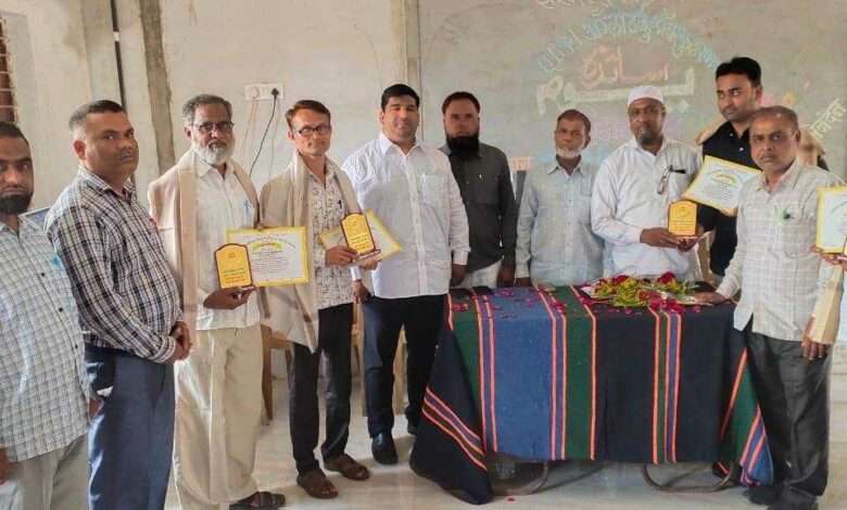 इत्तेहाद एज्युकेशन सोसायटी सावदा तर्फे क़ारी गुलाम मुस्तफा अंग्लो उर्दू हायस्कूल सावदा येथील शिक्षक व शिक्षकेतर कर्मचाऱ्यांना आदर्श शिक्षक पुरस्कार शिक्षक हेच खरे राष्ट्र निर्माता-हनीफ शेख