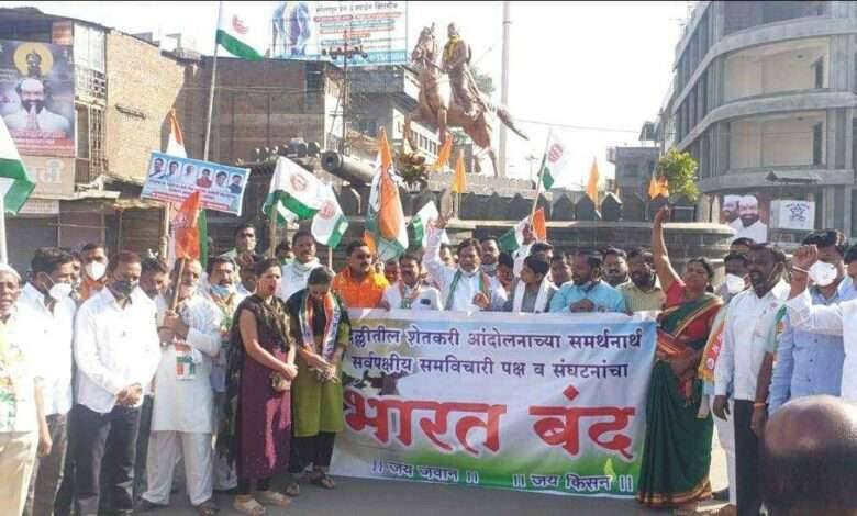 पंढरपूर : केंद्र सरकारने नव्याने केलेल्या कृषी कायद्या विरोधात पंढरपुरातील शेतकर्यांनी आज आक्रमक होत आक्रोश व्यक्त केला.पंढरपूरातील छत्रपती शिवाजी महाराज चौकात काँग्रेसचे तालुका अध्यक्ष प्रकाशतात्या पाटील सह, स्वाभिमानी शेतकरी संघटना, शिव सेना, बळीराजा शेतकरी संघटनेच्या कार्यकर्त्यांनी मोदी सरकार विरोधात निदर्शने केली.तसेच आज भारत बंद पुकारण्यात आले होते.या बंदला पंढरपूर शहरातून कडकडीत बंद पाळण्यात आला.पंढरपूर बाजार समितीमधील देखील बंद असल्याने सर्व व्यापार्यांनी बंदला पाठिंबा देत व्यवहार बंद ठेवले.