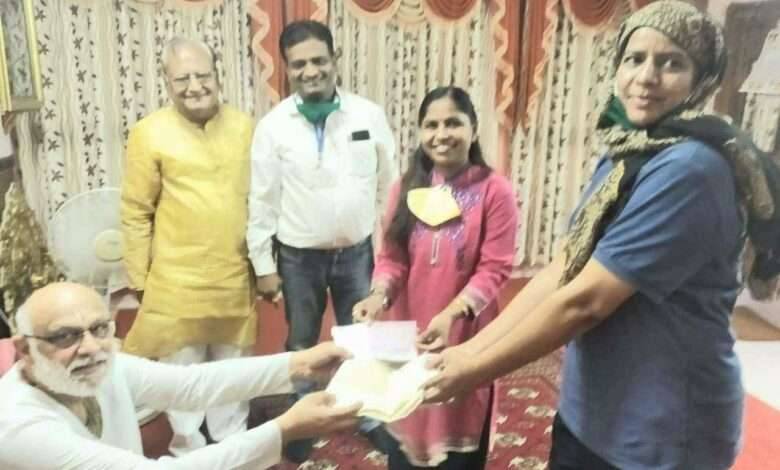 दिव्यांग बांधव त्यांना आरोग्य किट आणि जीवनावश्यक वस्तू दि 26 मार्च च्या आदेशानुसार लवकर मिळाव्यात असा अर्ज करण्यासाठी गेले असता मी कागद हातात घेत नाही.. नियमांचे उल्लंघन होते असे उत्तर दिव्यांग बांधवाना दिले होते.या पार्श्वभूमीवर हा धनादेश घेत असताना चा फोटो अत्यन्त बोलका आहे.