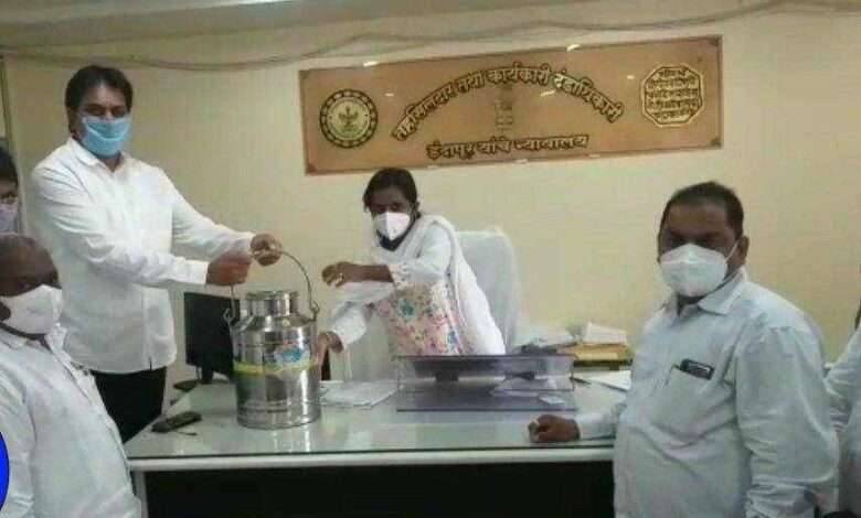इंदापुरच्या तहसिलदारांना महायुतीच्या वतीने गाईच्या दूधाची किटली माजी सहकार मंत्री हर्षवर्धन पाटील यांच्या हस्ते देऊन आंदोलन.