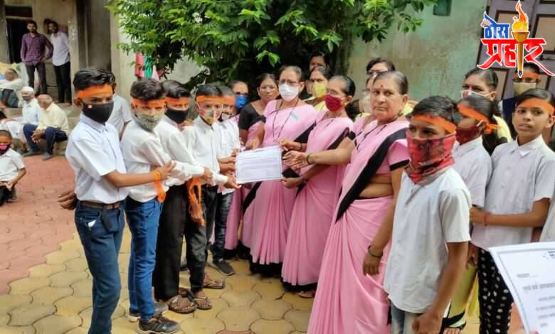 फैजपूर : फैजपूर तालुका तालुक्यातील पाडळसे गावातील सहयोगी क्लासेस चे श्री विजय कोळी व सौ सरला कोळी यांच्यातर्फे करोना सारख्या महाभयंकर आजाराच्या काळात, पाडळसे गावामध्ये ज्यांनी ज्यांनी करोना योद्धा म्हणून काम केले, त्यांचे आभार पत्र देऊन सत्कार, गणेश विसर्जन कार्यक्रमाच्या निमित्ताने करण्यात आला. ज्यामध्ये रेशनिंग दुकानदार, अंगणवाडी सेविका, मदतनीस, आशाताई वर्कर, आरोग्य सेविका, रिक्षा चालक, गावातील सामाजिक कामकरणारे युवक, फैजपूर पोलीस स्टेशनचे पोलीस, गावचे पोलीस पाटील, गावातील ग्रामपंचायतीचे कर्मचारी, तसेच सरपंच, ग्रामसेवक व सर्व ग्रामपंचायत सदस्य. यांनी सेवाभावी वृत्तीने व लोक हित जोपासत केलेल्या करोना काळातील कामामुळेच यांचा सत्कार, सहयोगी परिवारातर्फे चिमुकल्या विद्यार्थ्यांच्या हातून करण्यात आला. सर्व गावातून एक जनजागृती पर रॅली काढून, ठिक ठिकाणी वरील लोकांचा सत्कार करण्यात आला. आणि सामाजिक उपक्रम राबवण्यात आला. असा हा आगळावेगळा कार्यक्रम सर्व स्तरातील लोकांना खूप आवडला. त्याच बरोबर ज्यांचा सत्कार करण्यात आला, त्या सर्वांनी सहयोगी परिवाराचे खूप खूप आभार मानले. व असे विविध उपक्रम राबवण्यात यावेत, अशी इच्छा व्यक्त केली. या कार्यक्रमासाठी ग्रामपंचायत सरपंच, सदस्य, पोलीस पाटील, तसेच गावातील तरुण मंडळींनी सहकार्य केले. *सूत्रसंचालन कुमारी स्नेहल दांडगे यांनी केले. व आयोजन श्री विजय कोळी सर व सौ सरला कोळी यांनी केले.