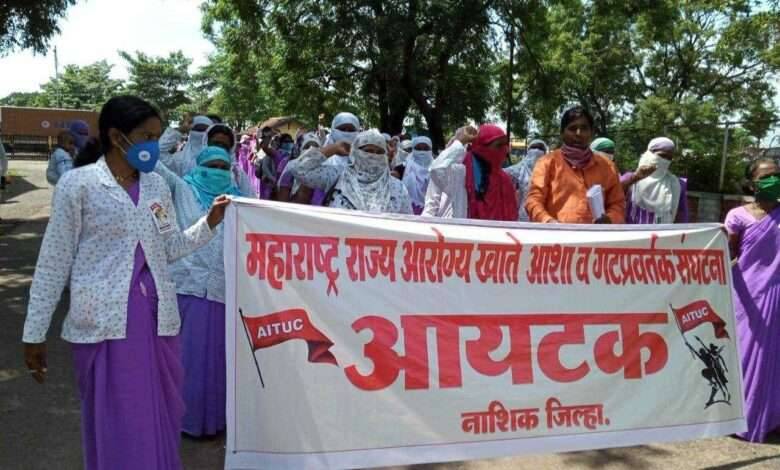 भारत सरकारच्या विविध आरोग्यविषयक व कल्याणकारी योजनांमध्ये काम करणाऱ्या आशा स्वयंसेविका व गटप्रवर्तक या कर्मचाऱ्यांना कायम कर्मचाऱ्याचा दर्जा देऊन कायम शासकीय कर्मचाऱ्यांप्रमाणे वेतन मिळावे तसेच अशा स्वयं सेविका गेल्या पंधरा वर्षापासून आरोग्य सेवा घराघरापर्यंत जाऊन प्रत्येक नागरिकाला आरोग्य सेवा देण्याचे काम करीत आहे मात्र त्या महिलांना शासकीय आरोग्य कर्मचाऱ्यांच्या चौपट कामे लावून तुटपुंज्या मानधनावर बारा-बारा तास काम करून घेतले जाते अशाप्रकारे केंद्र सरकार व राज्य सरकार या महिलांचे शोषण करत असल्याचे यावेळी आयटक जिल्हा संघटक विजय दराडे यांनी यावेळी नमूद केले