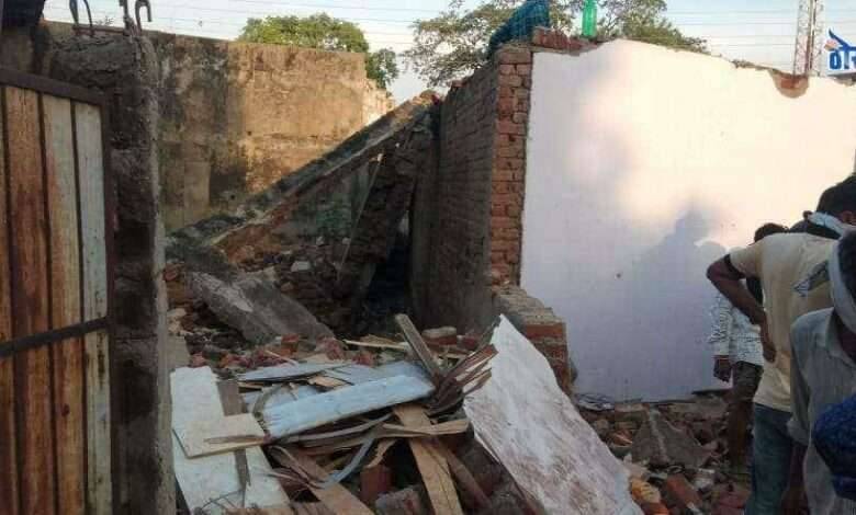चक्रीवादळाने भिंत कोसळून ३ जन जखमी , १ मृत १ अती गंभीर, व्यापाराचे लाखोचे नुकसान.