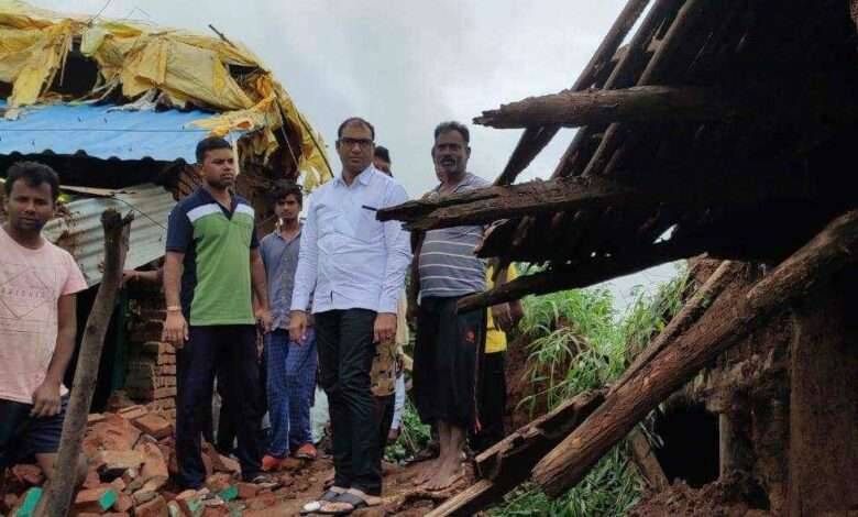 अतिवृष्टीमुळे साठगाव ता.चिमूर येथे घरांची पडझड पती-पत्नी थोडक्यात बचावले डॉ.सतीश वारजूकर यांनी घेतली आपत्तीग्रस्त नागरिकांची भेट