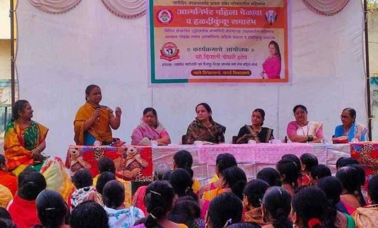 फैजपूर येथे खान्देश नारीशक्ती गृप दिपाली गृप्स अध्यक्षा सौ.दिपाली चौधरी झोपे यांच्या तर्फे भव्य आत्मनिर्भर महिला मेळावा व हळदीकुंकू समारंभ आयोजित करण्यात आला होता.यावेळी कार्यक्रमाच्या अध्यक्षस्थानी जामनेर येथील लोकनियुक्त नगराध्यक्षा सौ.साधनाताई गिरीश महाजन या होत्या तर प्रमुख अतिथी म्हणून जि.प.अध्यक्षा सौ.रंजना पाटील, रावेर पं.स.सदस्या सौ.योगिता वानखेडे, महिला मुक्ती मोर्चा जिल्हाध्यक्षा सौ.संगिता भामरे, ज्येष्ठ निरसेविका सौ.शकुंतला भारंबे,माजी नगराध्यक्षा सौ.आशालता चौधरी,सौ.सपना राणे,सौ.विद्या सरोदे,सौ.सारीका चव्हाण यांची उपस्थिती होती.यावेळी नारीशक्ती गृप तर्फे परिसरातील महिला भजनी मंडळे, महिला बचत गट,महिला कृषी गट,अंगणवाडी सेविका,आशा स्वयंसेवीका, तसेच विविध क्षेत्रातील उल्लेखनीय कामगिरी करणाऱ्या उपक्रमशील महिलांचा सन्मानपत्र देऊन सत्कार करण्यात आला.मान्यवरांच्या हस्ते दिपप्रज्वलन करुन राजमाता जिजाऊ माँसाहेब व क्रांतिज्योती सावित्रीबाई फुले यांच्या प्रतिमेला पुष्पहार अर्पण करून कार्यक्रमाला सुरुवात करण्यात आली.