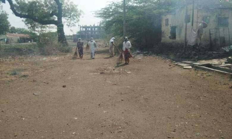 कोरोना व्हायरस संचार बंदीमुळे पाच दिवस स्वच्छता महिला साफसफाईसाठी रस्त्यावर