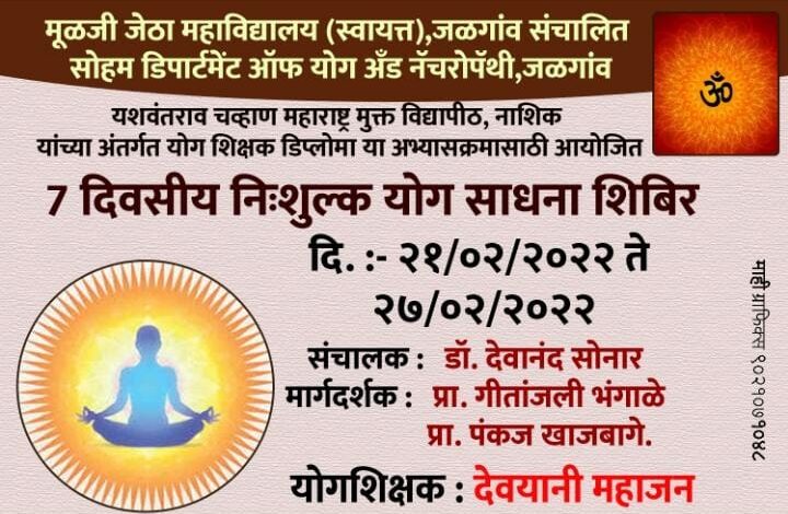 एरंडोल येथे निशुल्क सात दिवसीय योग साधना शिबिरचे उद्घाटन