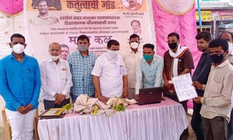 कोरोणा महामारी च्या काळात महाराष्ट्राचे मुख्यमंत्री उद्धव ठाकरे यांनी परवानाधारक रिक्षाचालक बांधवांसाठी पंधराशे रुपयाचा निधी देण्यात येणार असल्याची घोषणा करण्यात आली आहे. त्या अनुषंगाने एरंडोल शहर व तालुक्यातील परवानाधारक रिक्षा चालक बांधवांना ऑनलाईन अर्ज करण्यासाठी मदत कक्ष सुरू करीत आहे असे प्रास्ताविकात आरोग्य दूत विक्की खोकरे यांनी म्हटले.