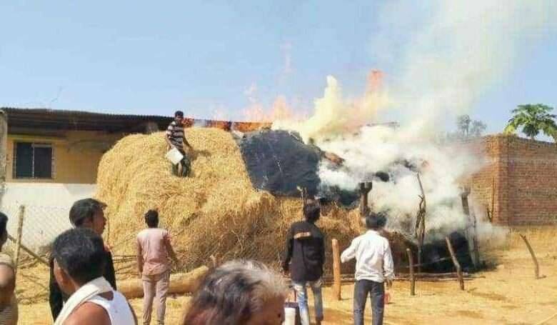 मालोदे यांच्या कंपाऊड मधील तनिसीच्या ढिगार्‍याला आग जांबुळघाट येथील घटना