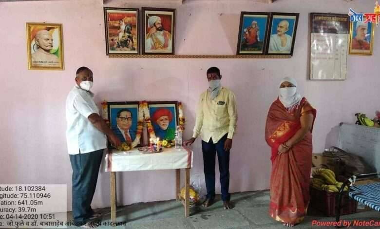 सरपंच रविंद्र पाटील व ग्रामपंचायत सदस्य विजय सोनवणे यांच्या हस्ते महात्मा ज्योतिबा फुले व महामानव डाॅ. बाबासाहेब आंबेडकर यांच्या प्रतिमेचे पुजन करण्यात आले. सदर कार्यक्रमाला योग्य ते सोशल डिस्टंन्सिंग अंतर राखत टप्प्याटप्प्याने सर्वांनी उपस्थिती लावली. यावेळी उपसरपंच कमल राखुंडे,सदस्या रेखा बाबर ,तेजमाला बाबर, कोंडाबाई जाधव, सुवर्णा तुपे, सदस्य उल्हास पाटील, किसन सरडे, बाळू गिरी, दशरथ बाबर पोलीस पाटील शैलजा पाटील अादींचीही उपस्थिती होती.