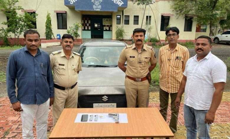 अमळनेर तालुक्यात गुन्हेगारी चे प्रमाण मोठ्या प्रमाणात वाढले आहे. नवीनच नियुक्त झालेले पोलीस निरीक्षक जयपाल हिरे यांनी आता कामगिरी दाखवायला सुरुवात केली असून सतत कार्यवाही सुरू आहेत.वाळू माफिया,अवैध धंदे, गांजा आणि इतर सर्वच गुन्ह्यांवर नियंत्रण करण्यासाठी सतत कार्यरत आहेत. कमी वेळात चांगलाच वचक गुन्हेगारांवर निर्माण करण्यात त्यांना यश मिळाले आहे.काल दिनांक २०/०७/२०२१ रोजी बकरी ईद निमीत्त अमळनेर शहरात स्टेशन रोड ते सुभाषचौक दरम्यान SBI बँकेजवळ पोलीस निरीक्षक श्री जयपाल हिरे व त्याचे सोबत पोहेकाँ/४१८ सुनिल हटकर ,पोहेकौँ/ भटुसिंग तोमर, राजेंद्र कोठावदे , पोना दिपक माळी, पोकाँ/ रविंद्र पाटील , पोकाँ विलास बागुल असे नाकाबंदी करीत वाहने चेक करीत असताना रात्री २१.०० वा. चे सुमारास एक ग्रे रंगाची स्विष्ट कंपणीची कार क्रमांक एम एच १२ टीडी ६७९१ ही सुभाष चौकाकडुन आली असता सदर कार हिस थांबवुन तिचे आतील बसलेल्या ४ व्यक्तींचे वर्तन संशयास्पद वाटल्याने त्याची चौकशी करुन अंगझडती घेतली असता पंकज उर्फ बंटी शंकर भुमकर वय २५ रा. नरे अंबेगाव ता. जिल्हा पुणे याचें कब्जात एक गावठी बनावटीचे पिस्टल ,दोन मॅग्झिन , तिन जिवंत काडतुस असे मिळुन आले. त्यास सविस्तर विचार पुस करता त्याचे साथीदार १) मनोज उर्फ मयुर भाउसाहेब गायकवाड वय २५ रा. चिखली जाधववाडी ता. हवेली जिल्हा पुणे २) औकार प्रकाश नाळे वय २८ रा. द्वारका विश्व , भोसरी पुणे ३) प्रशांत शिवाजी गुरव वय ३० रा. भोसरी पुणे याचे सह उमर्टी -मध्यप्रदेश येथे जावुन तेथुन सदरचे गावठी पिस्टल व जिवंत काढतुस , मॅग्झीन असे विकत घेतले असल्याचे सागीतले त्यावरुन नमुद पिस्टल , जिवंत काडतुस मॅग्झीन , कार, एक मोबाईल हॅन्डसेट असा एकुण १०,४०,०००/- रुपयाचा मुद्देमाल जप्त करण्यात आला